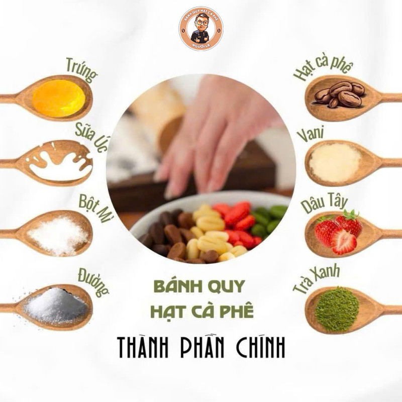 - Thành phần Bột hạt cà phê, bột mì, bơ, đường, trứng...